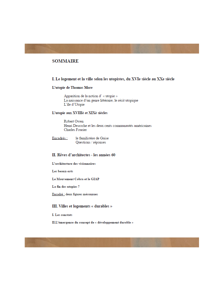 I. Le logement et la ville selon les utopistes, du XVIe siècle au XXe siècle